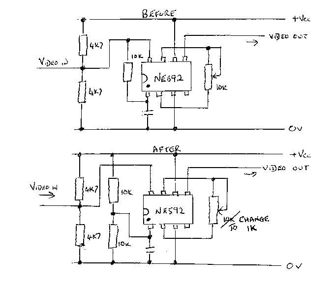 Or for better gain control change the above 10K pot to a 1K and set to about half way. If you set it to full gain you will have no Colour !