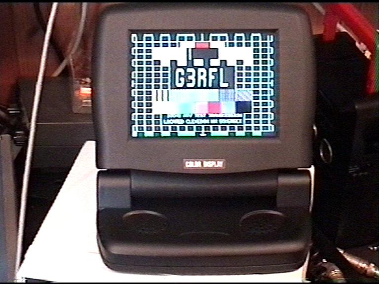 When out portable last year with Ross G0WJR I found due to the Sun that it was difficult to see the screen even in my car so I got hold of the above and have been impressed. It will do both Sound and Vision do both PAL and NTSC (never the same color twice) automatically. Works off 12Volts very nice Job and you can see the close up I took with my cheap Camera. Also there is a reverse switch for Australian Contacts.....G3RFL..